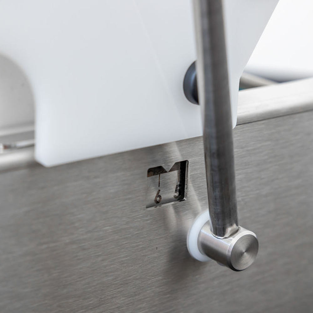 Stainless steel construction with POM case. Four adjustable depositing nozzles, which can be easily positioned or removed to work with any mold layout.