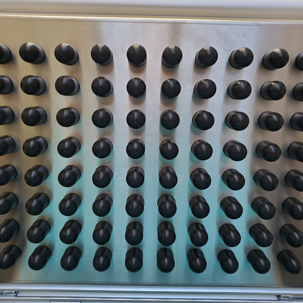 The pin fittings can be added on the original pins of the Universal Candy Demolder to increase the diameter and improve efficiency of unmolding with larger cavity size molds such as Macaron 80, Petit Cube 80, Mini Square 80, or custom molds.